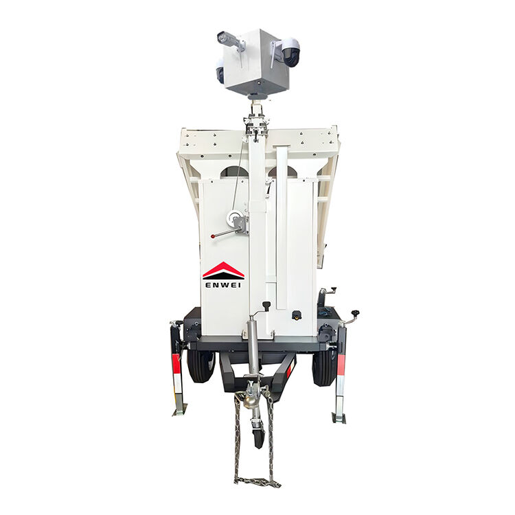 Der mobile Solarüberwachungsanhänger ist mit dem Solarüberwachungsanhänger kompatibel.Gleichzeitig, ist der Innenraum groß, so dass Zubehör, einschließlich Batterien, Wechselrichter und anderes Zubehör in den Innenraum gelagert werden kann. Der manuelle Mast ist insgesamt stabiler und langlebiger, mit verbessertem Windwiderstand.